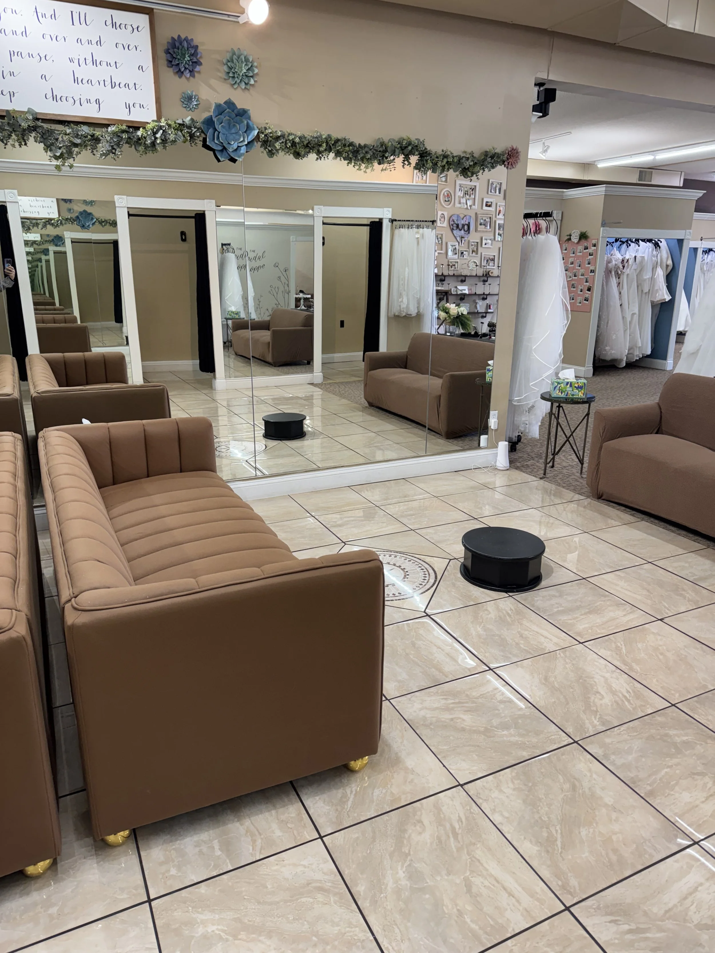 At The Bridal Shoppe, I allow the bride and one guest to look at dresses and select what dresses you like.  We suggest 4 dresses to start.  Usually after the first selection of dresses, you get a good idea of the things you like and do not like in a dress.  As you are trying on, usually myself and my manager Andrea come around to help listen to what you like and pull some options based on what you like.