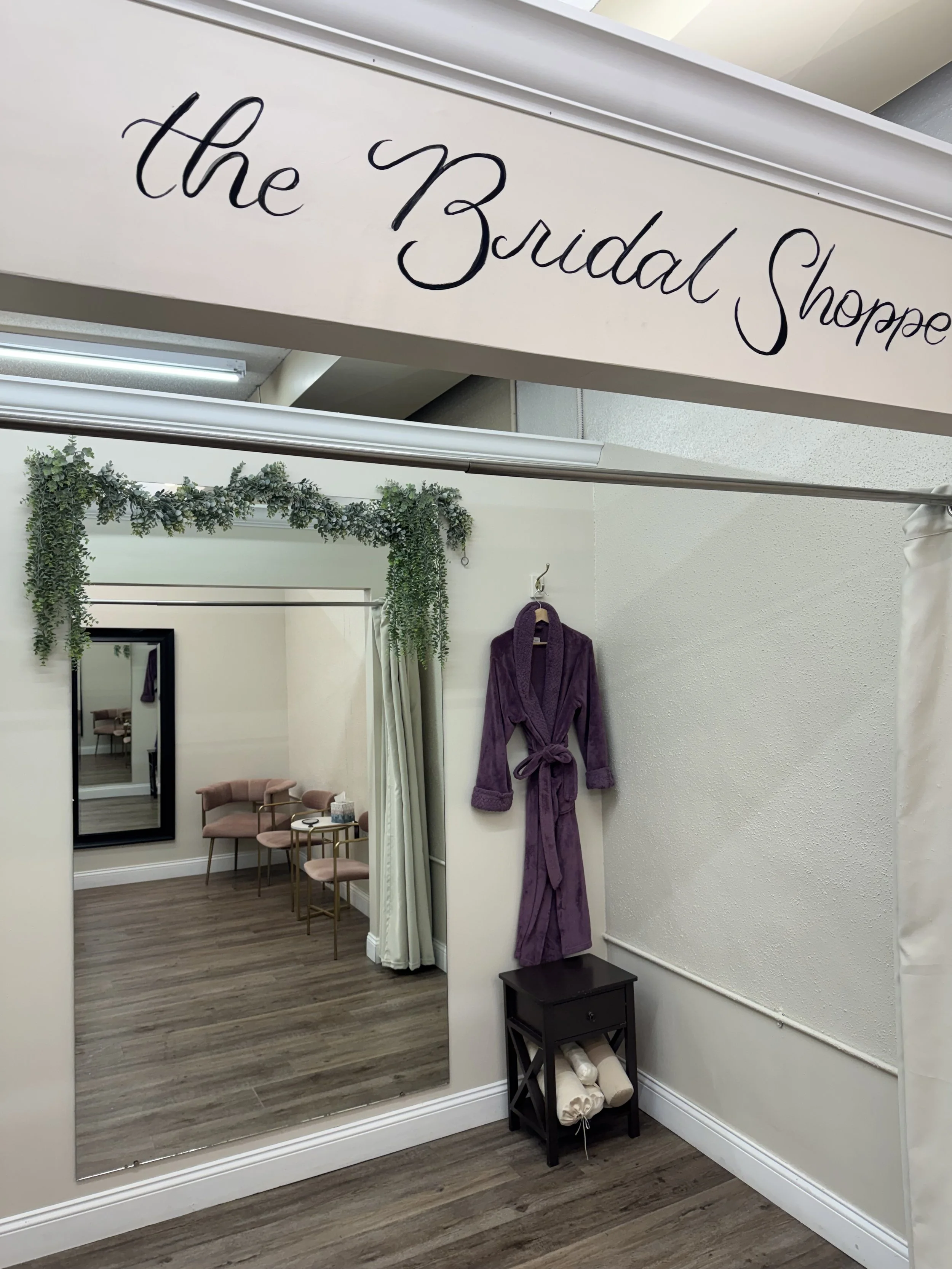 You will be greeted and seated in the store.  We have two private suites and three fitting rooms where you open to your guests seated on the couches.  We like to be introduced to your guests. We ask about your vision for your wedding day, ask if you’ve tried on a wedding dress before, and look at any inspiration photos you have.  It’s okay to be nervous, often girls come in worried or anxious, but usually after the first couple of dresses girls relax and start to really enjoy themselves.